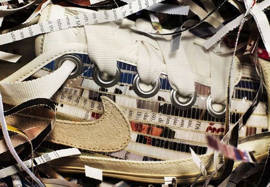 A Nike também aderiu a "eco-tendência": Sustentabilidade djá! A marca acabou de criar três modelos para o verão 2011 feitos com tiras de páginas de revistas velhas que recebe tratamento para dar resistência e impermeabilidade ao calçado. Sem contar o fato das "tirinhas" serem costuradas como uma espécie de quebra-cabeça o que acaba tornando seu o pisante único! Bem legal né? :)